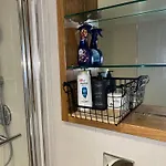 La propiedad dispone de cuarto de baño con una secadora y toallas de baño. Además, hay un inodoro separado y una ducha.